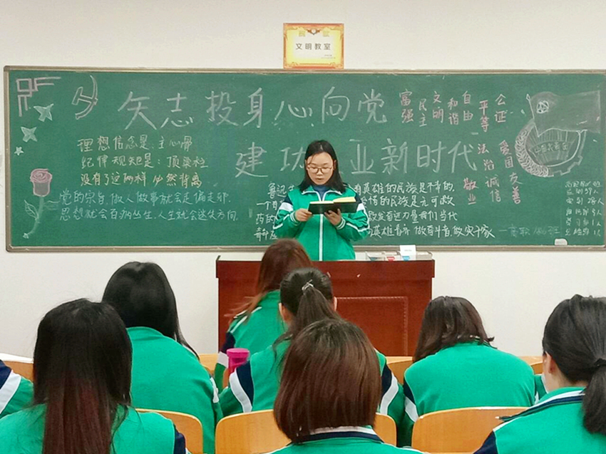 各班团支书向同学们讲述了中央组织部、中宣部“弘扬爱国奋斗精神 建功立业新时代”活动背景及现状,介绍了我国现阶段的瞩目成就和目前的国际形势,倡议同学们立足医护事业,努力学习护理技能,坚守护理职业道德,服务祖国医护事业。护理高职1805班板报内容丰富,团歌洪亮,发言积极,团课效果良好。(撰稿:十大买球的正规网站 张妍 审稿:吴亚飞)