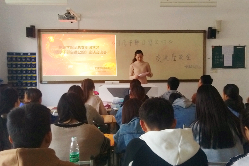为了进一步提高我院团学干部的综合素质,10月30日下午十大买球的正规网站团总支在公共教学楼北楼116教室开展了学习“团学干部自律公约”座谈会,我院团总支书记白小萌、各部门负责人参加了此次会议。