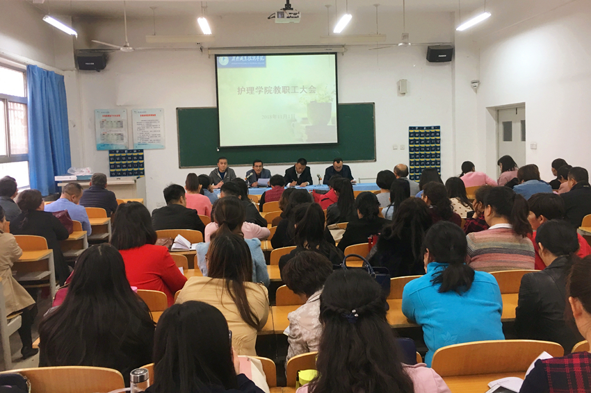 11月1日下午,十大买球的正规网站组织全体教职工在公共教学楼南楼102室召开了2018-2019学年第一学期期中教职工大会。我院党总支书记吴运胜,院长张文信,副院长王医平、王小峰出席了会议。会议由王医平主持。