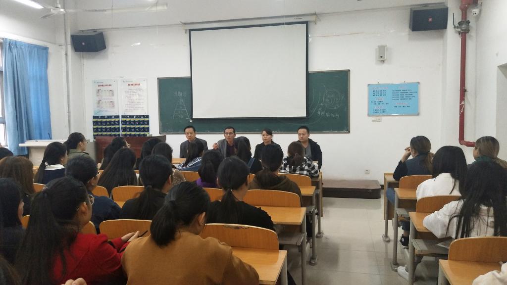 李晓乾向学生介绍了“杏泰血透”订单班的课程设置以及血透在护理专业的发展前景。李博强调了学生课堂纪律和班级管理制度,要求同学们遵守校纪校规,按照学院要求,完成血透班相关学习任务。王医平向同学们提了三点要求,一是要求同学们抓住此次血透班机遇,不断提升自身能力;二是要求同学们加强专业学习,增强自身的专业技能,适应社会发展需要;三是要求同学们拓宽就业思路,转变就业观念,树立“先就业后择业”的就业观念,以更开放的眼界、更广阔的思路去促进自我就业的实现。“杏泰血透”订单班主要负责老师王玮向同学们介绍了“杏泰血透”订单班的教材开发、实验室建设等相关事宜,强调了血透班学员筛选条件及实训课要求,希望同学们可以遵守相关规定,顺利毕业。