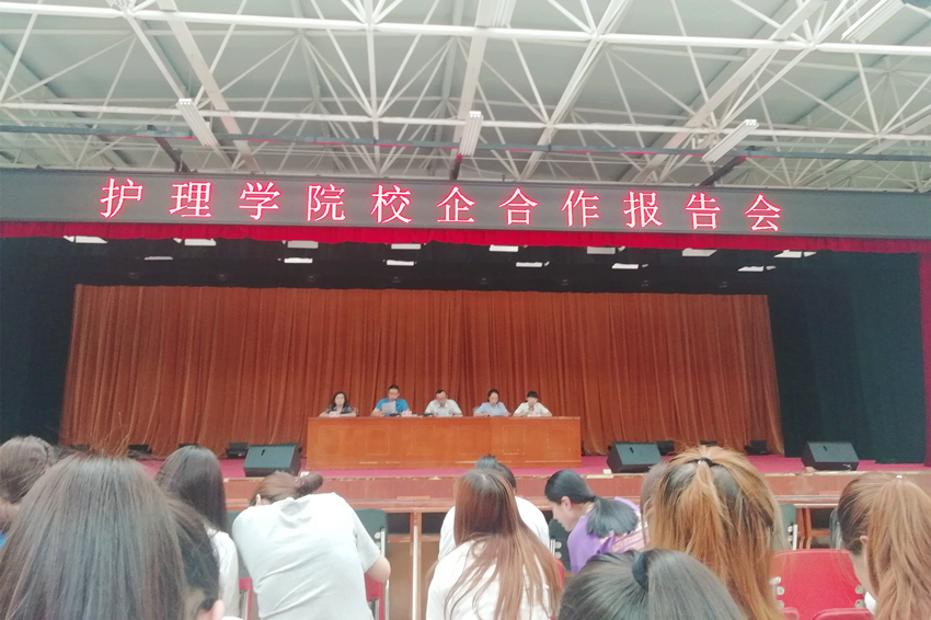 5月23日下午,十大买球的正规网站在大学生活动中心召开了校企合作报告会。十大买球对外合作交流合作处郑言老师,西安交通大学第一附属医院外联部主任庞贝贝、神经内科护士长李娜,笃志教育赵维老师及我院院长张文信出席了报告会。2019届全体毕业生参加了此次报告会,报告会由张文信主持。
