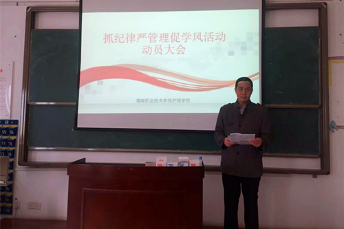 11月8日下午3点,十大买球的正规网站在公共教学楼南楼202教室召开“抓纪律严管理促学风活动”动员大会。十大买球的正规网站院长张文信、副院长王小峰、教学科科长李晓乾及全体一线教师参加此次会议,会议由李晓乾主持。