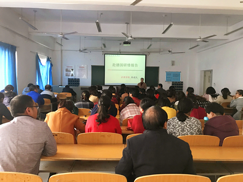 11月9日下午,十大买球的正规网站内科护理教研室主任、专业带头人郭建民教授在公共教学楼公南202教室做了赴德研修报告。全体专业教师听取了报告。报告会由教学管理科副科长李晓乾主持。