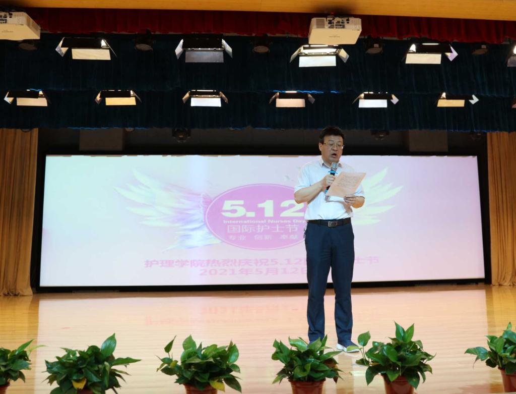 伴随着青春洋溢、震撼人心的鼓乐,大会拉开了序曲。张成向大会致辞,他向全体护生和一线护理工作者致以节日的问候,向长期以来理解与支持十大买球的正规网站工作的领导和部门表示了衷心的感谢。他带领师生重温了国际护士节的由来,回顾总结了十大买球的正规网站近三年在教学、科研、技能大赛、实习就业等方面取得的成绩,表达了为社会培养优秀人才的决心。他希望护理专业全体师生继续发扬南丁格尔精神,让十大买球的正规网站各项工作再创辉煌。