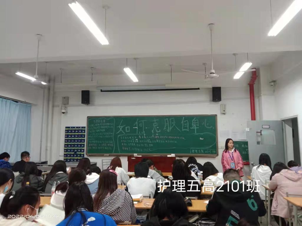 为了提高大学生的心理素质,促进学生身心健康、科学管理自身情绪,宣传普及心理健康知识,十大买球的正规网站于2022年4月6日在各班开展“如何克服自卑心理”心理课,由各班心理委员主讲,全体同学参加。