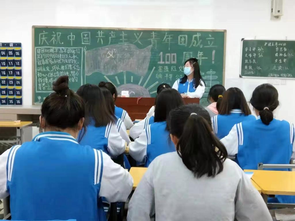 本次团课由团支书主讲。团支书组织同学们齐唱了《光荣啊,中国共青团》团歌,观看了共青团发展历史视频,回顾共青团历史发展轨迹。接着,他带领同学们学习了习近平总书记在庆祝中国共青团成立100周年大会上的重要讲话,强调青年团员要紧紧围绕在党中央的领导下,加强思想政治引领,提高思想政治认识,以高标准严格要求自己,并牢记“四个自信”,谨记习近平总书记对新时代青年的六点要求。课后,团支书还带领同学们围绕建团百年,采用办黑板报的方式展现了中国共青团百年历史的青春活力和绽放多彩,一幅幅精致的画中透露着同学们对中国共青团百年历程的深深畅想。大家纷纷表示,将不断加强学习,练就过硬本领,实现自身价值,将来扎实工作,以昂扬进取姿态迎接党的二十大胜利召开!