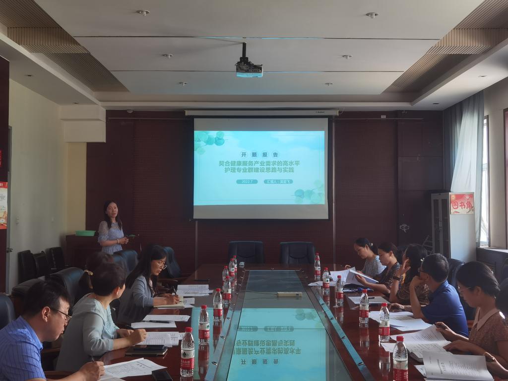 项目主持人吴亚飞汇报了《契合健康服务产业需求的高水平护理专业群建设思路无与实践》(21GZ018),孙会娟汇报了《高职医学类专业课程思政资源库建设路径研究--以助产专业为例》(21GY071)。她们就项目研究的背景意义、改革目标、研究基础、研究内容、研究步骤、经费预算和成果等向专家组成员作了报告。专家组成员本着严谨、科学、实事求是的态度,与项目组成员进行研讨交流,对开题报告从研究内容、研究方法等多角度进行细致点评,对每个项目研究可行性给予指导,提出了合理化的意见和建议,对项目研究的具体开展有很强的指导意义。