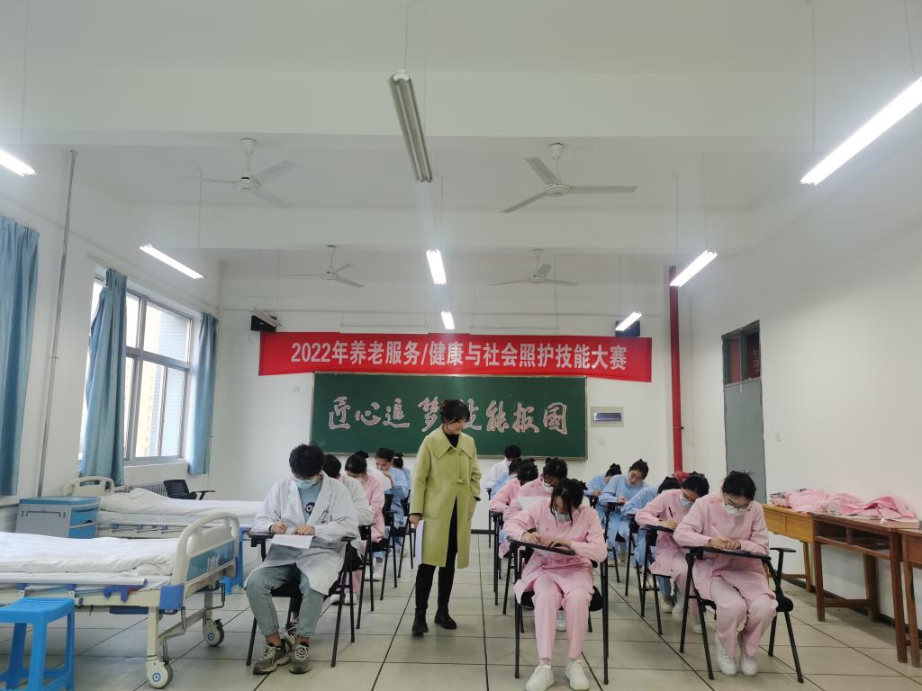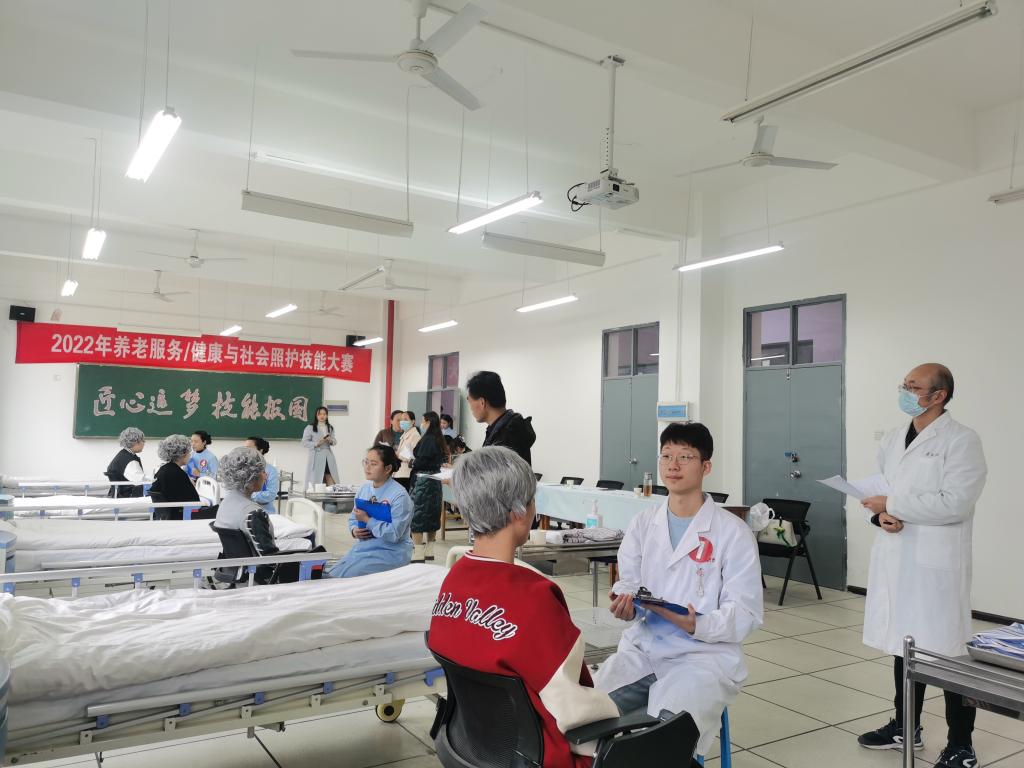 比赛分为理论考试和实践操作技能考试两部分。理论考试严格对接国赛要求,根据赛项不同分为单选题和书写持续性改进照护计划两种题型,考核了选手对专业知识的掌握程度。操作技能考试根据实际工作情境设置不同工作任务,考核选手运用知识为服务对象提供服务的职业素养和综合能力。