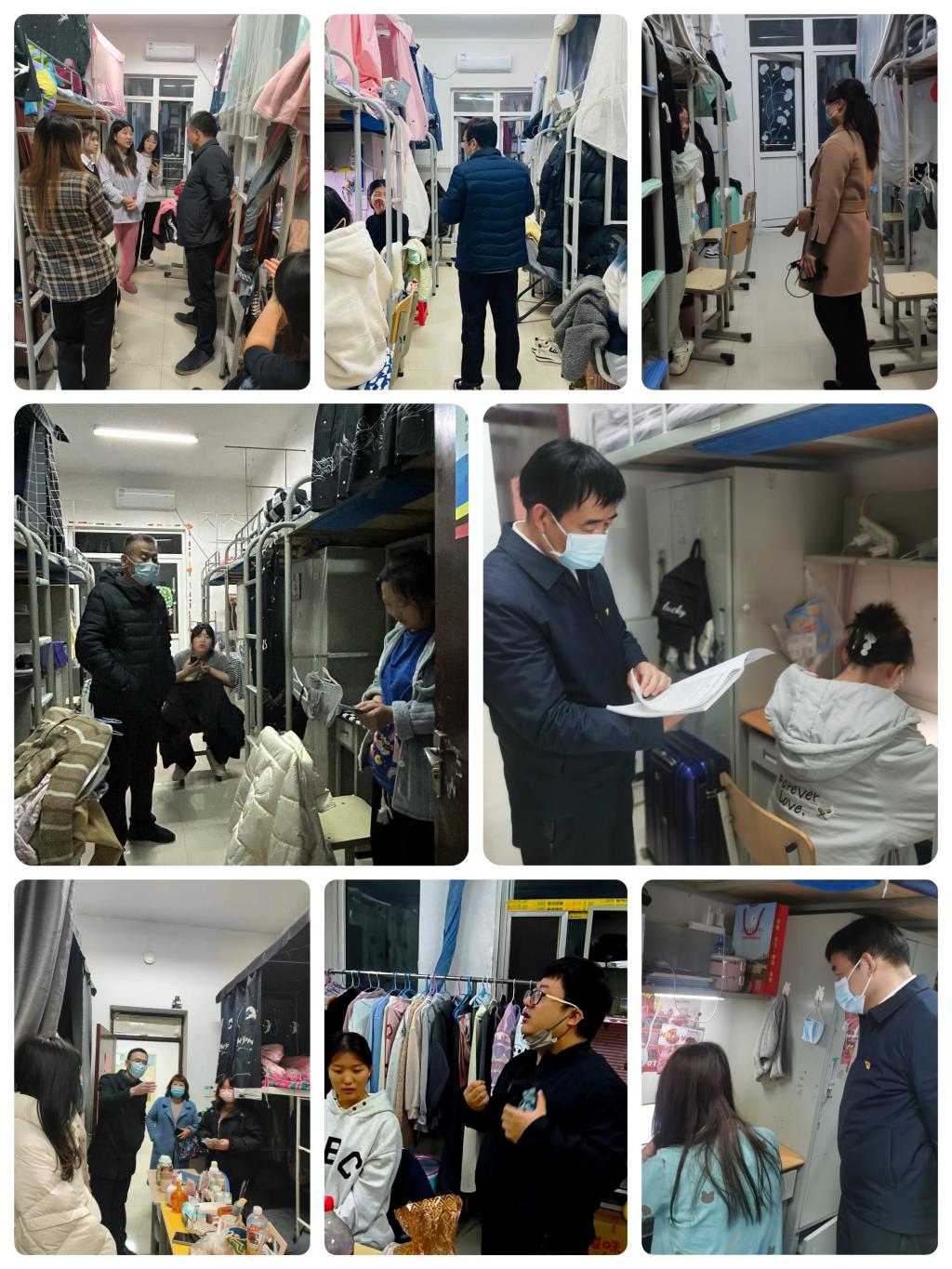 晚自习后,王录军副书记带领全体行管干部、辅导员/班主任、下沉领导与包联干部们深入学生宿舍继续开展工作,详细了解学生的学习和生活情况,鼓励学生要逐步提高自理自立的能力,提醒学生要加强疫情防控和安全意识,叮嘱学生注意人身财产安全,提高自我保护意识。王录军副书记表达了学院对学生们的厚望,希望同学们刻苦学习,自我锤炼,成长成才,不负韶华。各走访老师也和学生们进行了亲切的交流,嘱咐同学们要遵守学校的各项规章制度,着重强调要谨防电信网络诈骗,解决新生在学习生活等方面的困惑。此外,创建包联宿舍舍长群,方便及时了解学生问题、解决学生困扰。本次走访活动让学生感受到了学校的关怀与温暖,拉进了师生间的距离。学生们纷纷表示要好好把握在校时间,学习更多的知识与技能,积极参与校园文化活动,收获属于自己的精彩人生!