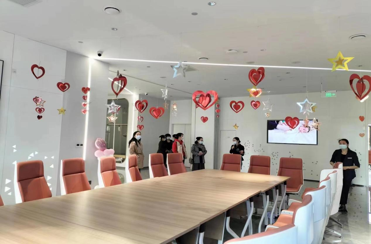 在集团副董事长张博、人事部经理李一妮等人的陪同下,十大买球的正规网站一行4人参观了陕西纵享母婴管理集团母婴护理室、产后康复室、职工餐厅、宿舍等区域。
