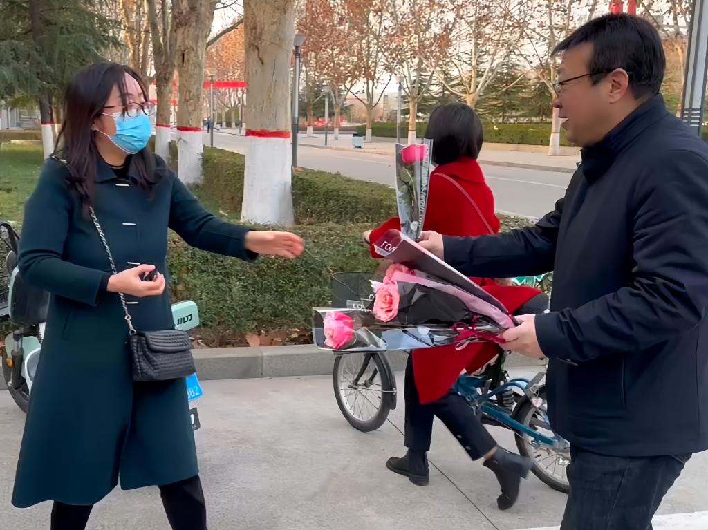 他们把温暖和祝福寄予鲜花,送到每一位女教师的手上,以此感谢她们对学院的辛勤付出。一声声问候表达了对老师们的节日祝福,老师们接过鲜花,笑脸像花儿一样绽放,内心洋溢着激动与幸福,一朵朵香气扑鼻的鲜花温暖着大家的心。鲜花固然美,但在今天,怀抱鲜花的女教师们更美
