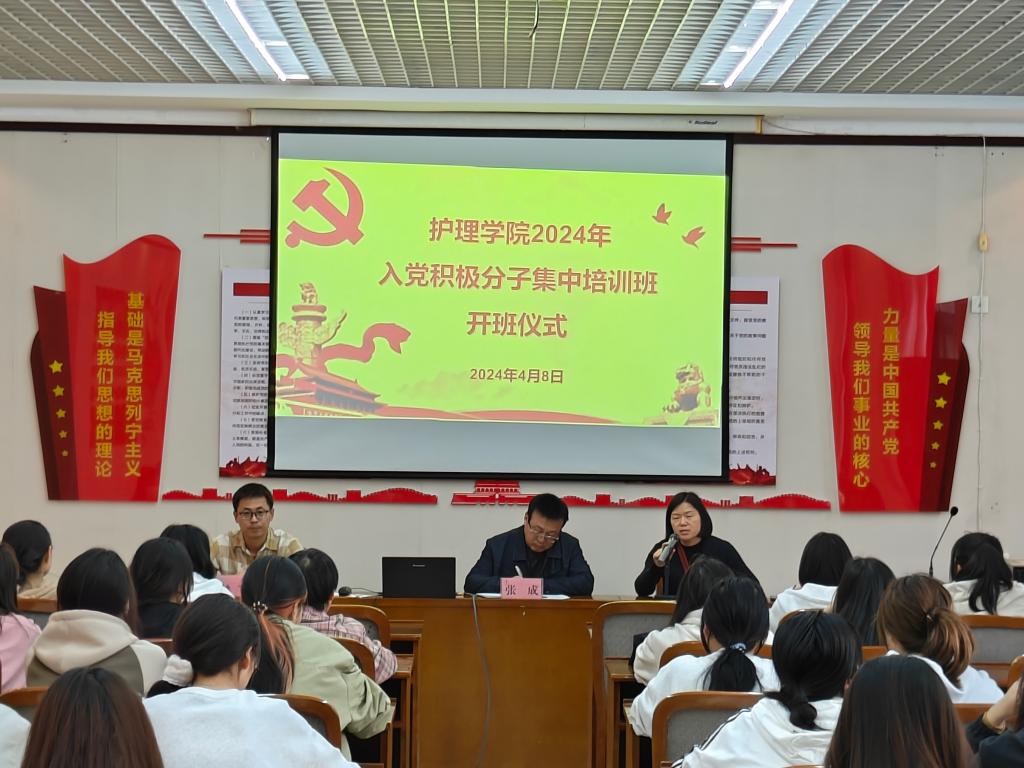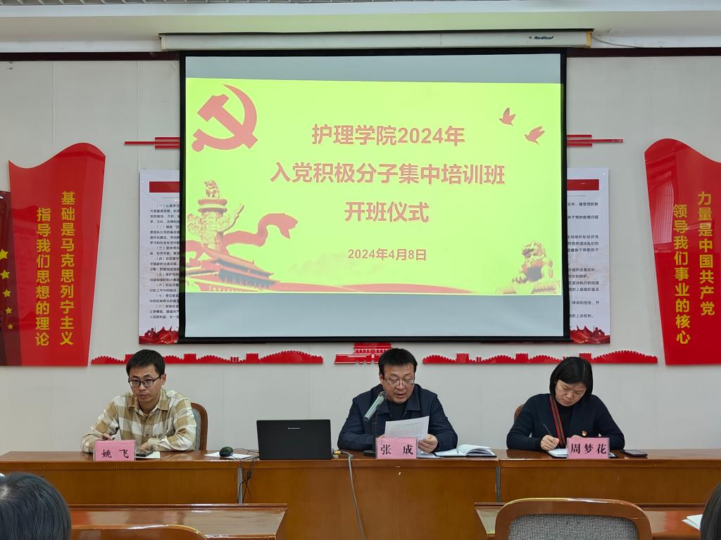 4月8日下午16:00,十大买球的正规网站在医南第二会议室举行2024年入党积极分子培训班开班仪式。此次培训班旨在进一步加强入党积极分子的思想政治教育,提升他们的党性修养和组织纪律性。出席本次开班仪式的有十大买球的正规网站院长张成、党总支副书记周梦花、学生党支部书记姚飞。会议由周梦花主持。