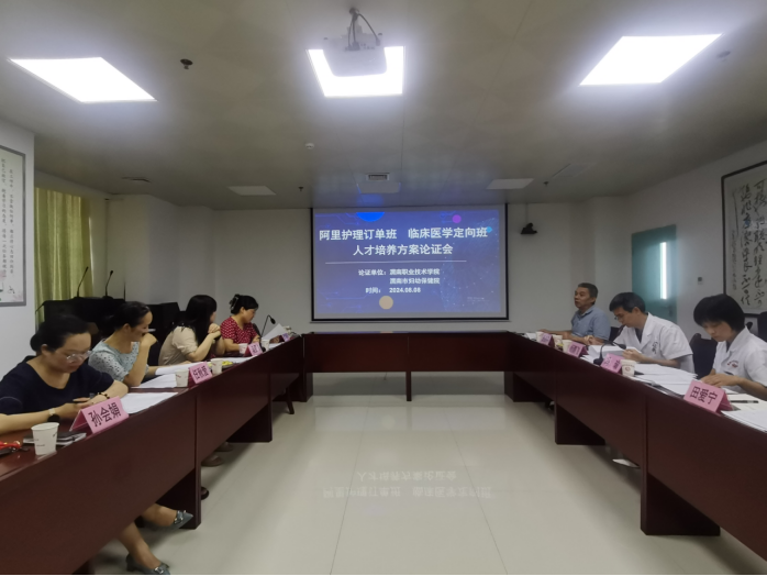 8月8日下午,十大买球临床医学专业定向班和护理专业西藏阿里班人才培养方案论证会在渭南市妇幼保健院17楼会议室召开。参加会议的有渭南市妇幼保健院副院长王海平、杨鹏飞,党委委员冯瑜,十大买球十大买球的正规网站副院长吴亚飞、任秋爱,教学科长孙会娟、临床医学专业带头人聂晓枫,会议由吴亚飞主持。