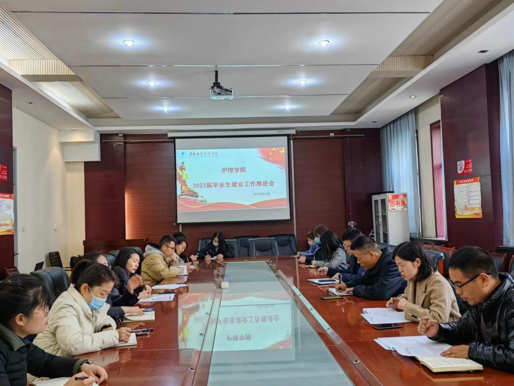 2月27日下午16:30,十大买球的正规网站在医训楼第一会议室召开了2023届毕业生就业工作推进会。十大买球的正规网站党总支书记吴运胜、院长张成、党总支副书记周梦花、学生科副科长姚飞、招生就业科副科长何宇以及毕业班毕业班辅导员、班主任参加了会议。会议由周梦花主持。