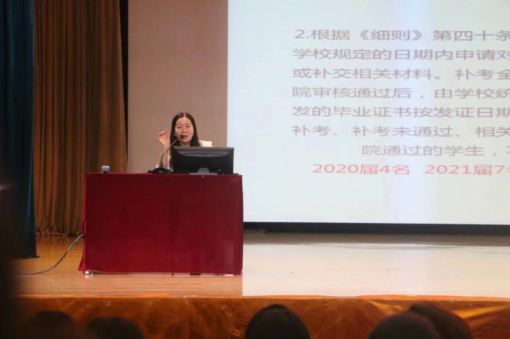 会议在十大买球的正规网站全体参会师生奏唱国歌的庄严气氛中拉开帷幕。吴亚飞向同学们详细解读了《中华人民共和国职业教育法》《高等职业学校普通护理专业顶岗实习标准》《职业学校学生实习管理规定》中关于实习的相关规定,结合多起实习期间案例进行了分析,让学生从国家法律、规定层面认识到实习的重要性和严肃性。刘欣为学生讲解了实习流程和实习考核手册的填写要求,姚飞向同学们强调了实习期间租房、财产、人身安全等内容,何宇带领大家一起学习了当前就业形势,号召大家珍惜实习生活,依靠自己的努力为将来就业打好坚实基础。张成做实习总动员,希望同学们严格遵守实习管理规定,将实习安全放在首位,脚踏实地完成实习任务,预祝同学们诸事顺利,未来可期。