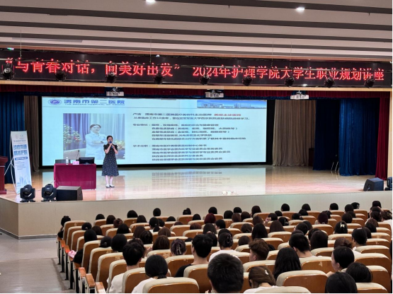 卢老师从事临床工作10余年,有多年职业规划经验,她以“与青春对话 向美好出发”为主题,结合当前就业形势和大学生实际需求,深入浅出地讲解了职业生涯规划的目标、方法和步骤。卢老师通过生动的案例和详实的数据,向同学们展示了专业的广阔前景。特别强调了自我认知的重要性,提醒同学们要根据自己的兴趣、特长和价值观,明确职业目标,并制定切实可行的行动计划。