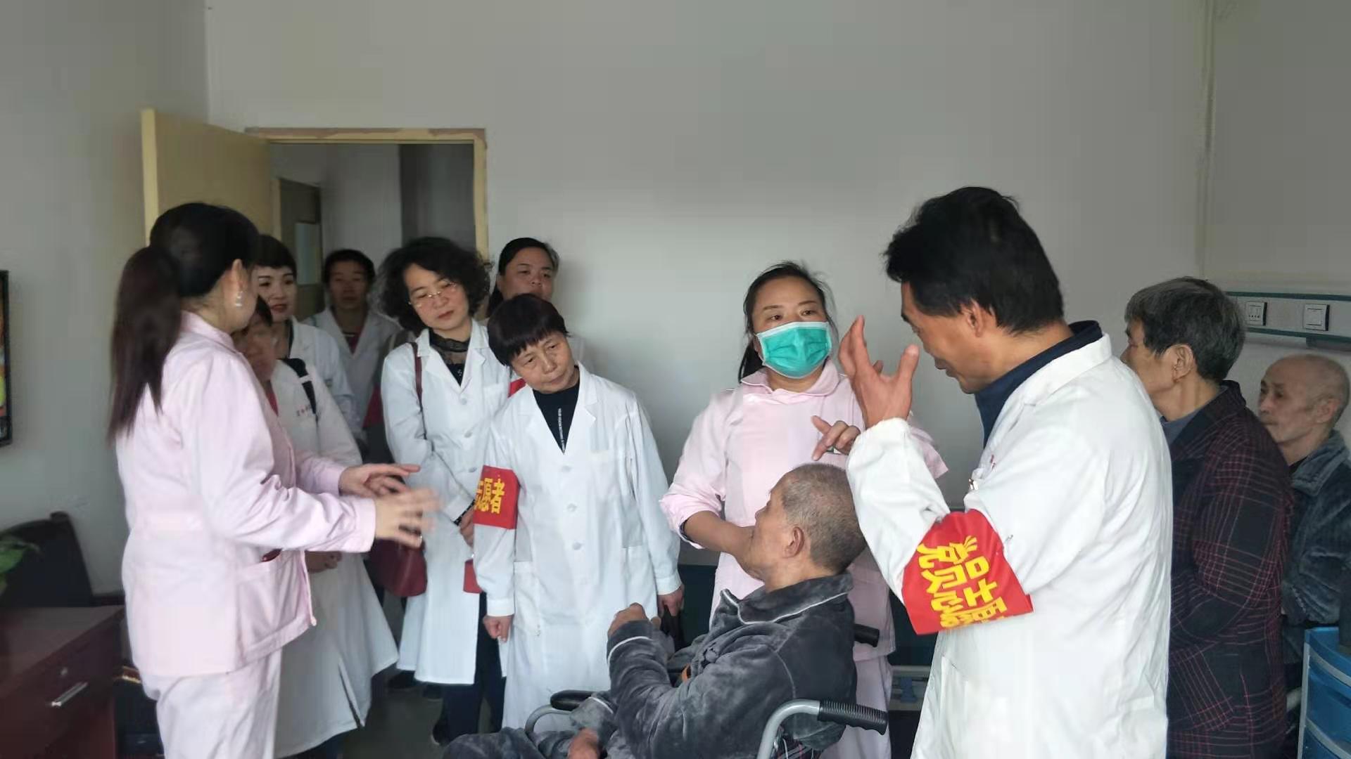 渭南市福利院负责人向志愿者介绍了福利院的基本情况和注意事项。志愿者在负责人的引荐下,为老人们送去了香蕉、苹果、梨等水果。他们根据不同楼层老人们的身体状况,展开了义诊工作。教师小组主要针对老人们的健康问题进行了咨询与宣教,党员教师走进每个房间,耐心、细致地为老人们解答健康困惑。学生积极分子逐一为老人们测量了血压、血糖、体温等体格检查项目。在义诊的过程中,服务队成员耐心倾听老人们的诉求,陪老人们聊天,回忆过去的峥嵘岁月,感受老人们艰苦奋斗的精神,帮助他们清洁生活环境,受到福利院老人们的一致好评。