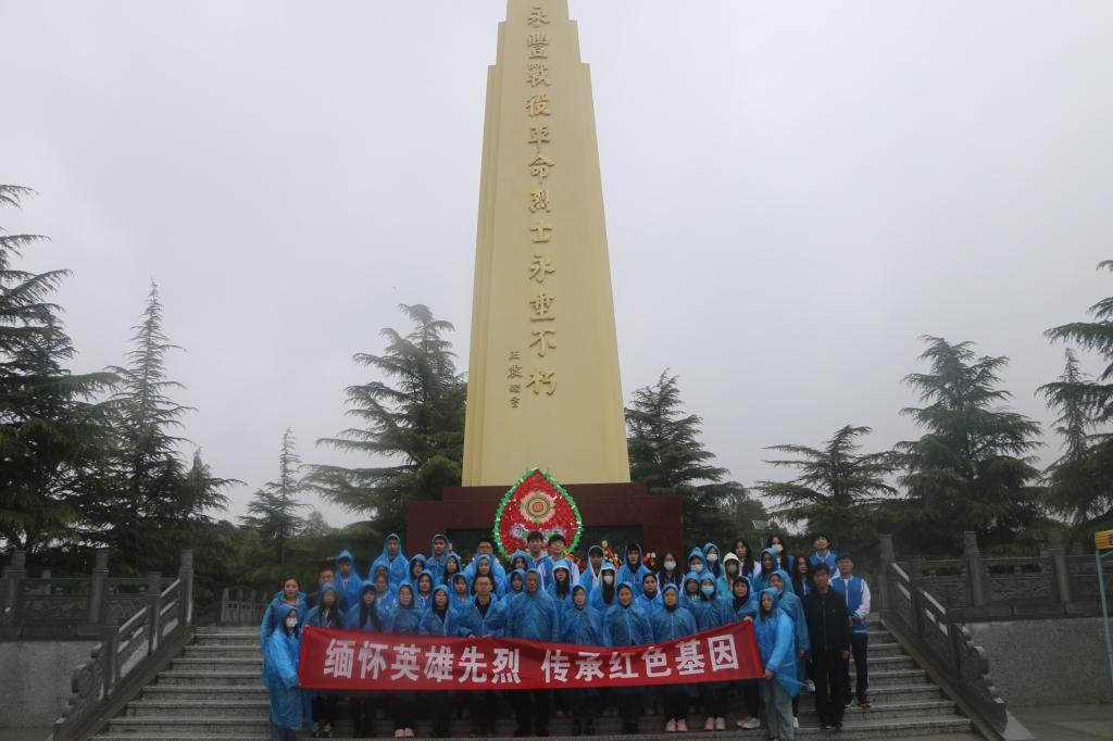 随后,大家来到永丰烈士陵园,重温红色历史,缅怀革命先烈。全体人员在十大买球的正规网站党总支书记吴运胜的带领下向烈士纪念碑敬献花篮、肃立默哀,表达对先烈们的崇高敬意与深深哀思。由十大买球的正规网站学生支部书记姚飞领誓,全体党员重温入党誓词,感受初心涌动,激发前行动力。由团员陈资贺领誓,全体青年团员重温入团誓词,铮铮誓词在纪念广场回荡,每位团员胸佩团徽,表情庄严肃穆。