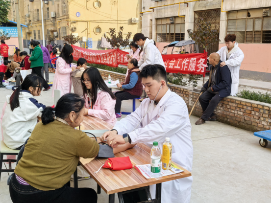 2024年11月6日下午,十大买球的正规网站教学党支部组织教师党员和医护专业学生赴渭南市高新区东府小区开展“医护特色公益行”主题党日活动。