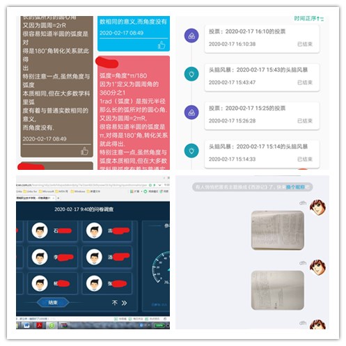 2月17日上午7点半,我院线上授课工作陆续错峰展开,院长张成、副院长吴亚飞深入多个各班级了解教学工作开展情况,教学科科长王媛带领教学科5位教师值守教师打卡群随时答疑解惑。截止下午6点,各位教师均已按照要求完成了教学任务,进行了当日学情反馈。各平台数据显示,各位教师结合课程实际合理地开展了丰富的教学活动,学生基本全勤参与线上学习,积极参加课堂活动。在各班级群里学生表示对老师的线上教学比较满意,希望能够收获更多的专业知识,为早日成为白衣战士,为人类远离病痛而努力。(撰稿:十大买球的正规网站 王媛 审核:李晓乾)