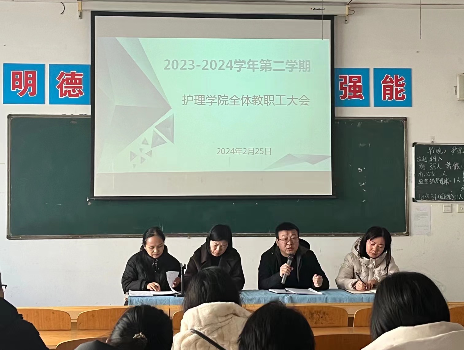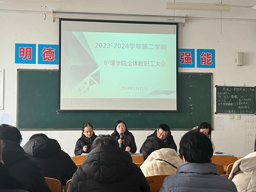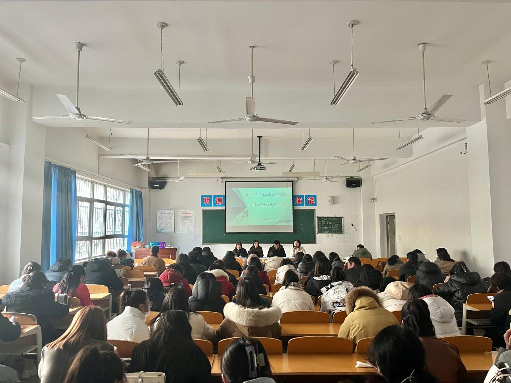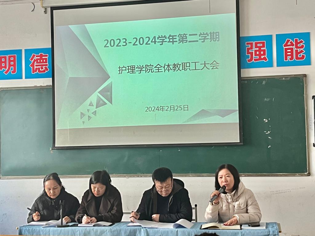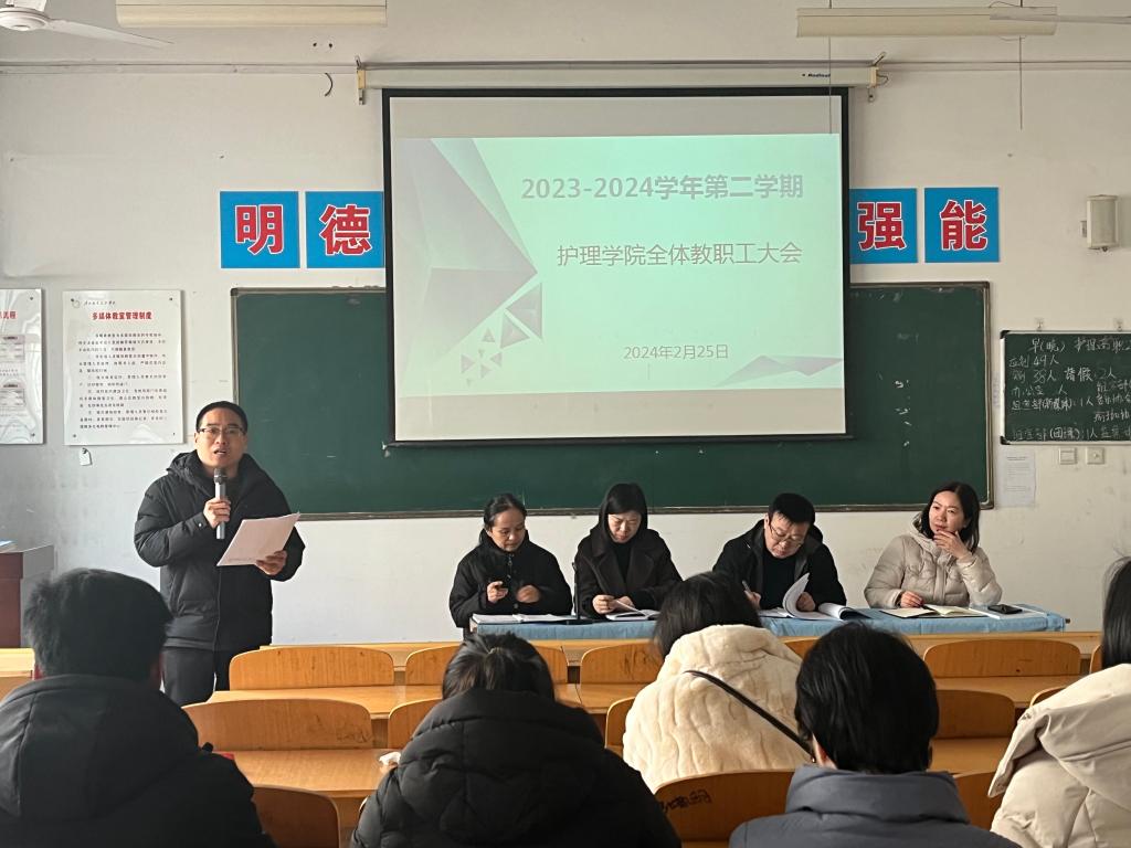 为确保开学之后的各项工作平稳有序开展,2月25日上午,十大买球的正规网站院长张成、副院长吴亚飞,党总支副书记周梦花、招生就业科科长何宇及全体教职工齐聚公共教学楼南楼102教室,召开2024年春季开学教职工大会。会议由十大买球的正规网站副院长任秋爱主持。