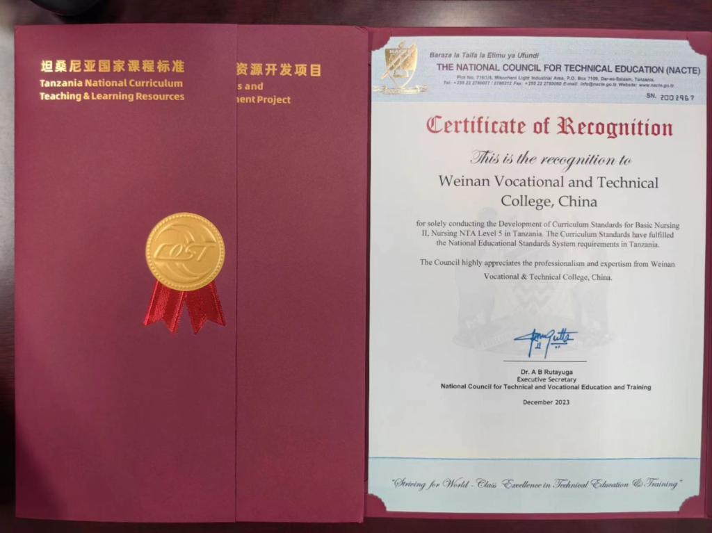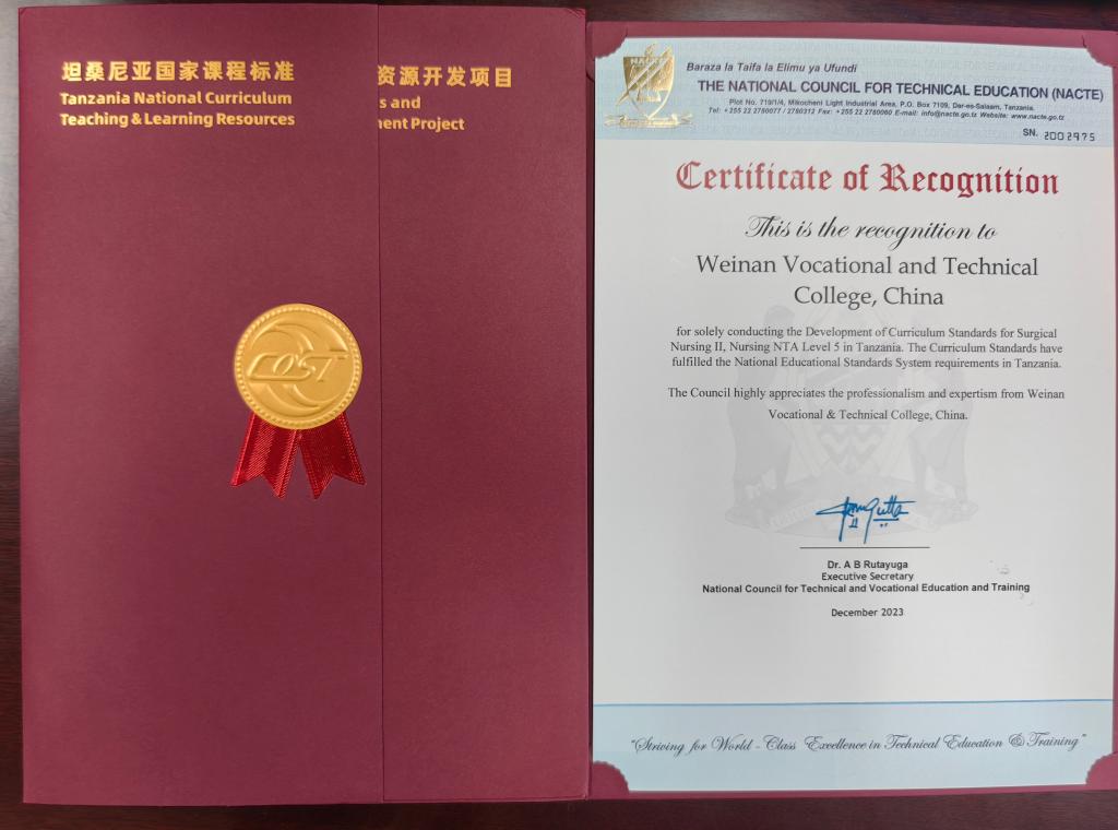 2023年9月中非职业教育联盟组织启动了“坦桑尼亚国家课程标准和课程资源开发项目”,十大买球护理专业NTA5级《护理学Ⅱ》和《外科护理学Ⅱ》两门课程积极申报立项。立项以来,学校领导高度重视,相关部门大力支持,十大买球的正规网站与中非职业教育联盟紧密配合,课程负责人李丰收和席卫娟老师快速反应,组成合作项目课程小组,组织团队人员多次召开专题会议,各成员均具备高度负责态度,以扎实课程、充实内涵、为学校打响课程品牌为己任,团队人员先后研讨、撰写、修改、定稿,和合作方专家多次交流,历经三稿,完美完成本次对外课程输出项目。2门课程标准已被坦桑尼亚国家职业教育委员会审核认证,并签发认证函。