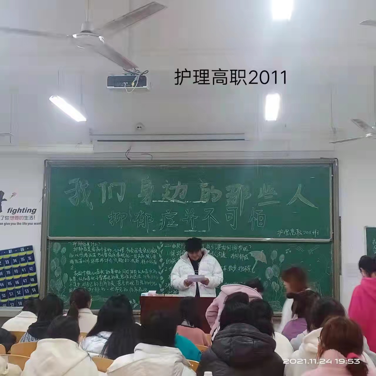 为了促进学生对抑郁症的认识,有效预防抑郁,11月24日晚,十大买球的正规网站组织各班开展了“我们身边的那些人”主题心理课,由各班心理委员主持,全体学生参加。