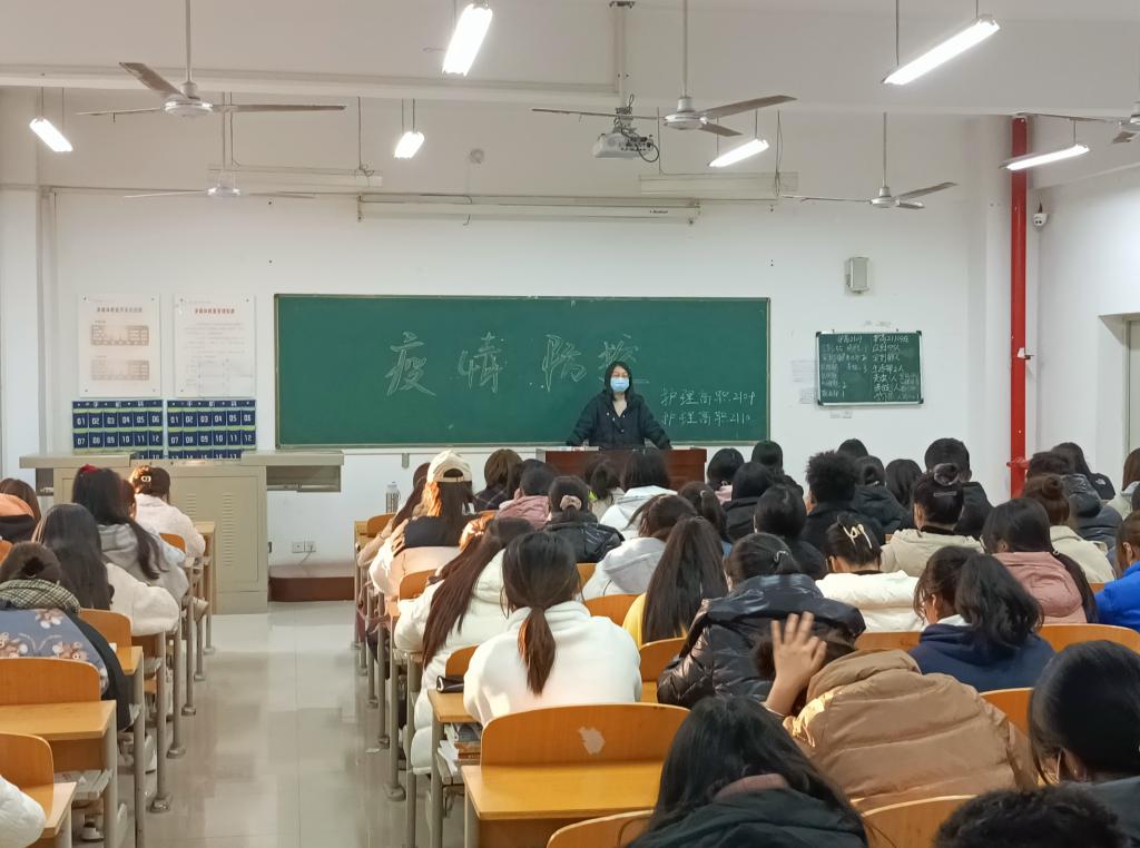 各班辅导员采用线上、线下两种形式,从疫情防控知识、现状即严峻形势入手,组织学生认真学习了学校《关于启动新冠疫情防控应急机制的通知》,按照学校《关于召开疫情防控紧急主题班会的通知》精神,要求全体学生有序进出宿舍楼、教学楼、餐厅等公共场所,并佩戴口罩;保持个人及集体卫生,不聚集不串宿;勤洗手,勤通风,做好疫情防控;加强体育锻炼,提升自身免疫力,全力以赴打赢疫情防控校园阻击战。