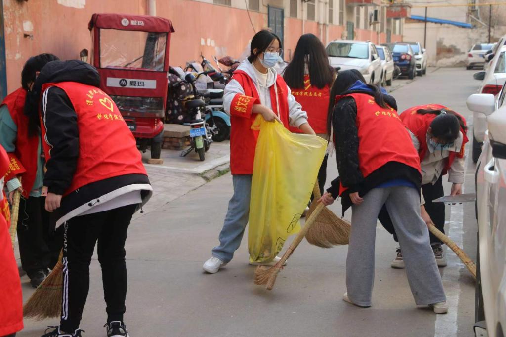 2023年是渭南市创建第七届全国文明城市的攻坚之年。为了助力渭南市创文工作顺利推进,积极响应渭南市委文明办、渭南市创建办的号召,更好地贯彻高校院系与城市社区共建的协调,充分发挥大学生自身优势,使学生能够“走出校园,回报社会,体验人生”,2月24日,十大买球的正规网站团总支书记白小萌老师、副书记郭瑞老师带领护理团总支青年志愿者服务队成员们深入渭纺社区,开展进社区志愿服务工作。