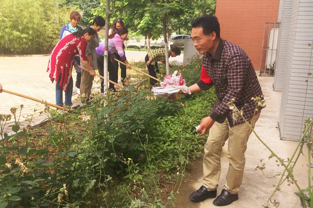 五月芳草萋萋,微风和煦,玉兰树苍翠挺立,蔷薇花灼灼绽放,我院党员在感受到初夏美好的同时,也看到悄然疯长的杂草。我院党总支为保护有“花园式校园”美称的美好环境,呼吁党总支红袖章志愿者志愿对玉兰园杂草、垃圾进行了清理,同志们一呼百应,齐聚玉兰园。他们仔细对杂草进行辨认,或借助工具,或徒手上前,对杂草进行了彻底清理。一番劳作之后,整洁的花园也令各位党员深感欣慰。