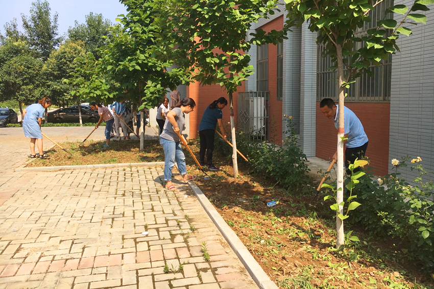 我院党总支红袖章志愿服务队在医训楼东面绿化带除草