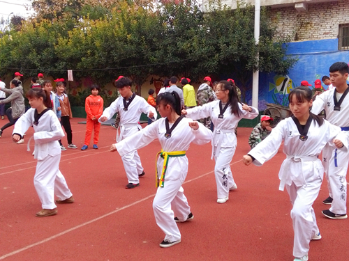 上午9点,志愿者们到达曙光特教学校,跆拳道协会成员向孩子们展示了跆拳道,志愿者为孩子们讲了童话故事,共同折爱心留作纪念,用行动去关爱特殊儿童。孩子们虽然不能说话,却用铅笔写出了“谢谢哥哥姐姐们”的真挚话语,他们用稚嫩的笑脸,无声的行动,感动了每一位志愿者。