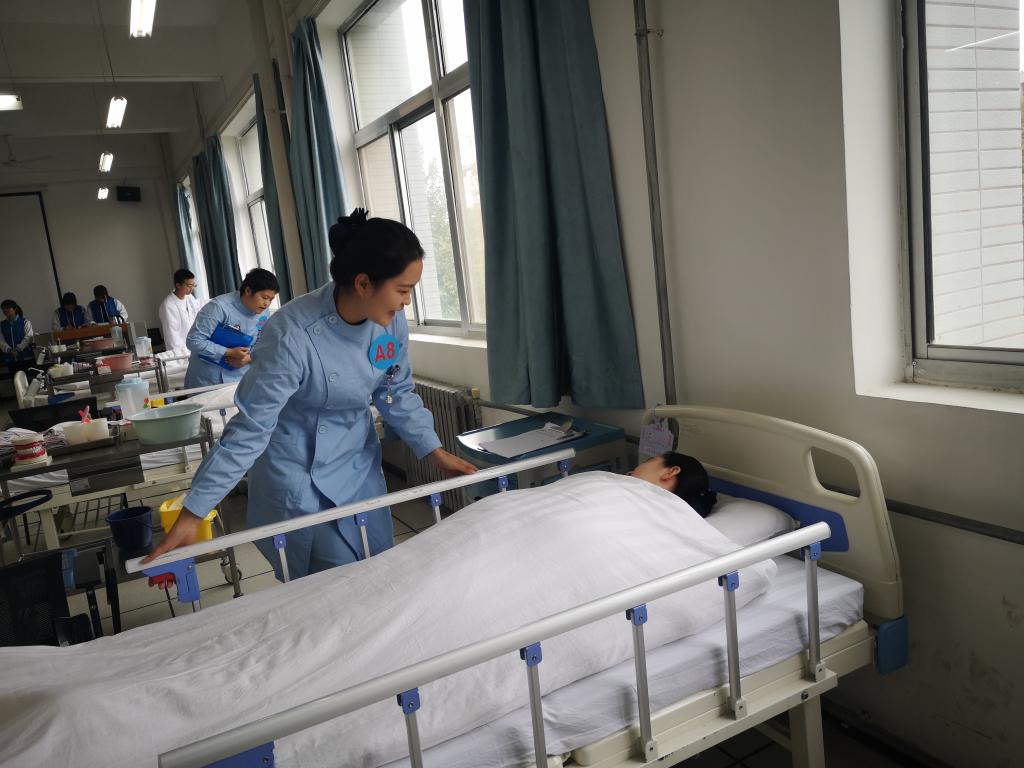 为弘扬尊老、敬老、孝老、爱老的优秀传统美德,按照《关于开展2021年技能大赛月活动的通知》(渭职院办发【2021】138号)精神,十大买球的正规网站2021年重阳节在医训楼北楼3楼举行了2021年校级养老服务和健康照护技能大赛。十大买球教务处王秋焕老师,十大买球的正规网站党总支书记吴运胜、院长张成、副院长吴亚飞、教学科长王媛、教学科副科长孙会娟出席了比赛,任秋爱等5名教师担任大赛评委,无课教师观摩了比赛。